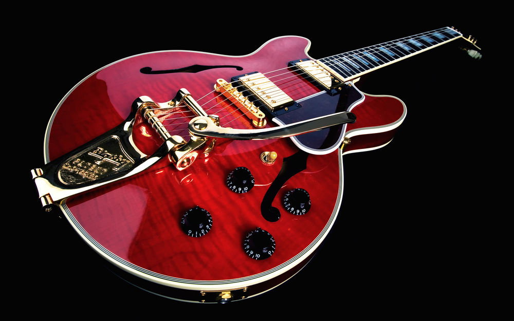 Гитары, имеющие некоторые особенности как акустической гитары (наличие в корпусе резонирующих полостей, называемых «эфами»), так и электрогитары (наличие установленных звукоснимателей). Данную разновидность гитар принято считать переходной от акустической гитары к электрической. Такие гитары стали первыми электрогитарами, на которые впервые стали устанавливать электромагнитные звукосниматели. Впоследствии стали выпускаться электрогитары с цельным корпусом, хотя полуакустические гитары до сих пор пользуются популярностью среди музыкантов. Используются чаще всего в таких стилях, как: джаз, блюз, рок-н-ролл, рокабилли.